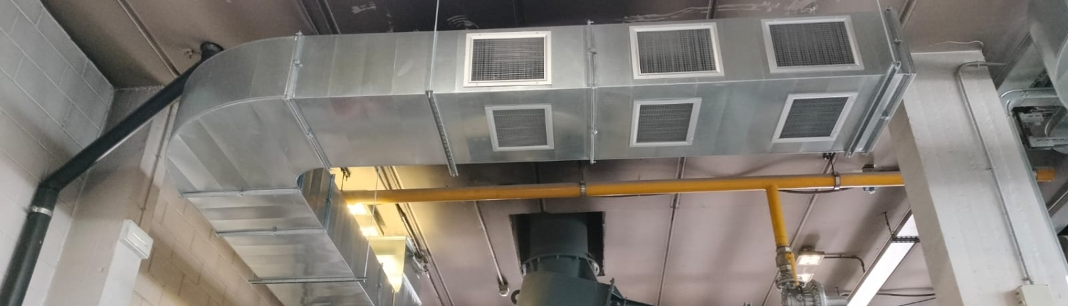 Per ridurre le temperature interne e migliorare la qualità dell’aria, sono stati installati due torrini di estrazione da circa 6.000 mc/h posizionati in copertura. Questi sono stati collegati a canali in lamiera zincata quadrangolari, dotati di griglie di ripresa dell’aria, collocate strategicamente sopra i forni. In questo modo si garantisce un ricambio costante dell’aria e un abbattimento efficace del calore in eccesso, tutelando la salute di chi opera quotidianamente all’interno dell’impianto.